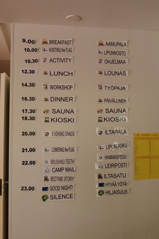 Leiriläisten työskentelyä seuratessa huomaa, että kenenkään tarvitse osallistua sen enempää kuin itse tahtoo. Leiriläisten elo on Mallinkaisilla hyvinkin vapaata. Aamuherätyksiä ei varsinaisesti ole, vaan jokaisen huoneen ovessa lukee leiriläisen itse toivoma aika milloin hän tahtoo aamuisin herätä. Ilmapiiri on kahdessa leiriläisten ryhmässä kannustava ja jopa hieman äänekäs. Ohjaajat saavat kuitenkin pidettyä lapset keskittyneinä, kun leirikeskuksen sisätiloissa Oksana Nykytyk vetää eräänlaista ”sanabingoa” ja tarinankirjoitusleikkiä.