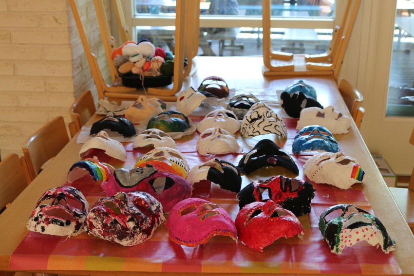 Leiriläiset ovat tehneet itselleen värikkäät naamiot.