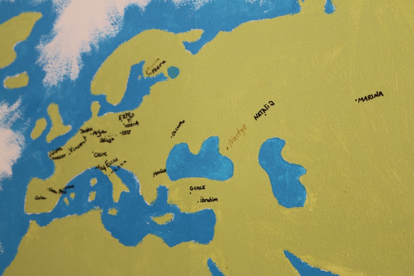 Vapaaehtoistyöntekijät ympäri maailmaa kirjoittavat nimensä maailmankarttaan siihen kohtaan, mistä ovat kotoisin.