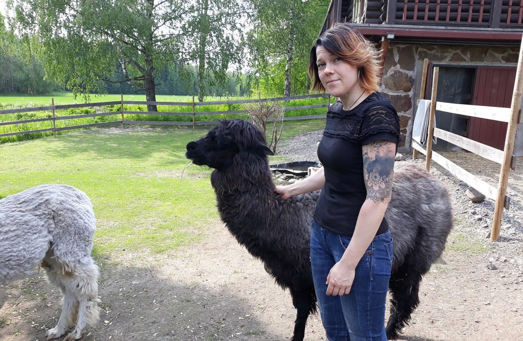 – Lauman omistaja halusi lopettaa kasvatustoiminnan ja oli kuullut rauhallisesta tavastani käsitellä eläimiä. Hän toivoi laumansa saavan luotani rakastavan loppuelämän kodin. Kun vielä yksi lauman alpakoista tuli oma-aloitteisesti ja hyväksyvästi haistelemaan kasvojani, se oli siinä.