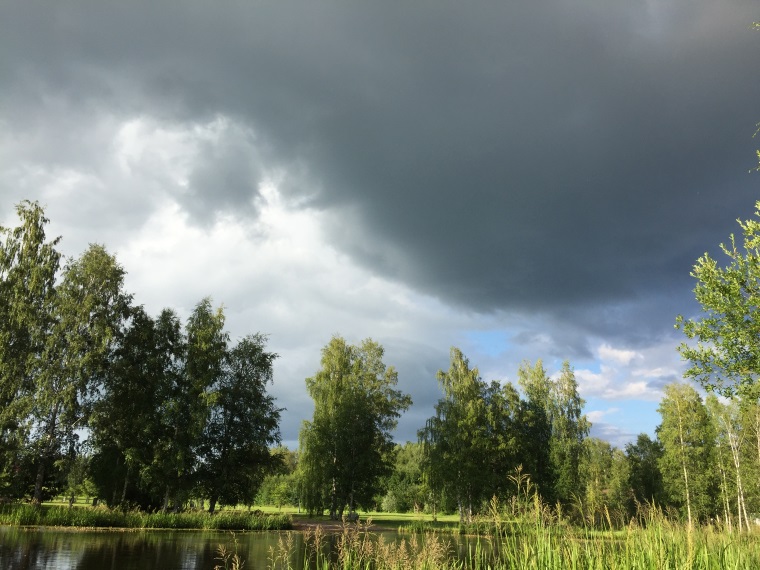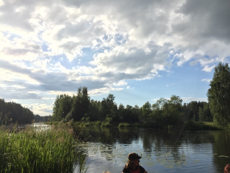 IMG_5279Pieni kesäsade ei melontaretkellä haitannut, vaikka pilvet näyttivätkin uhkaavilta.