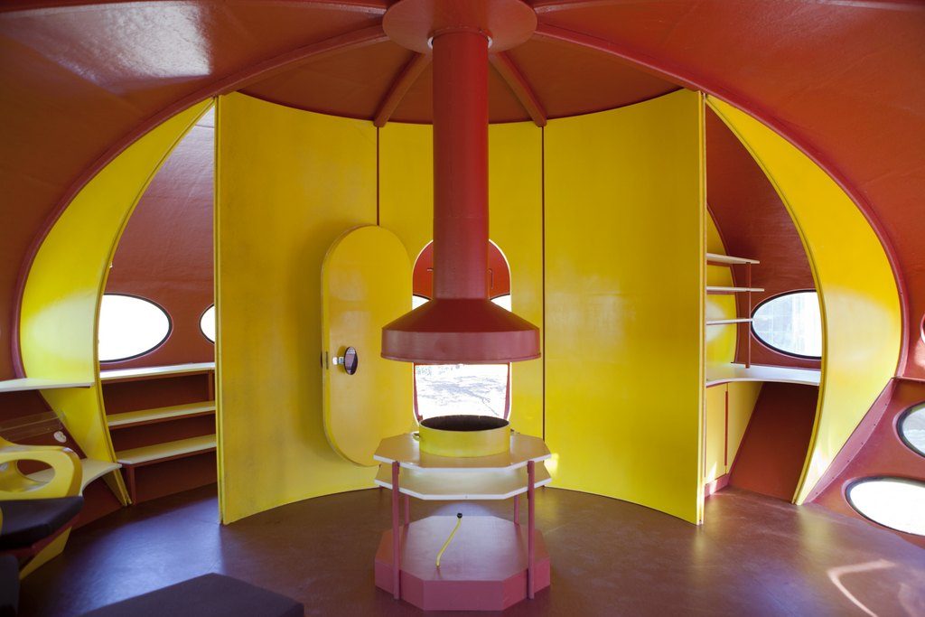 Futuro toimi taukotupana. Siellä oli pieni keittiö ja sängyiksi pidennettävät tuolit.