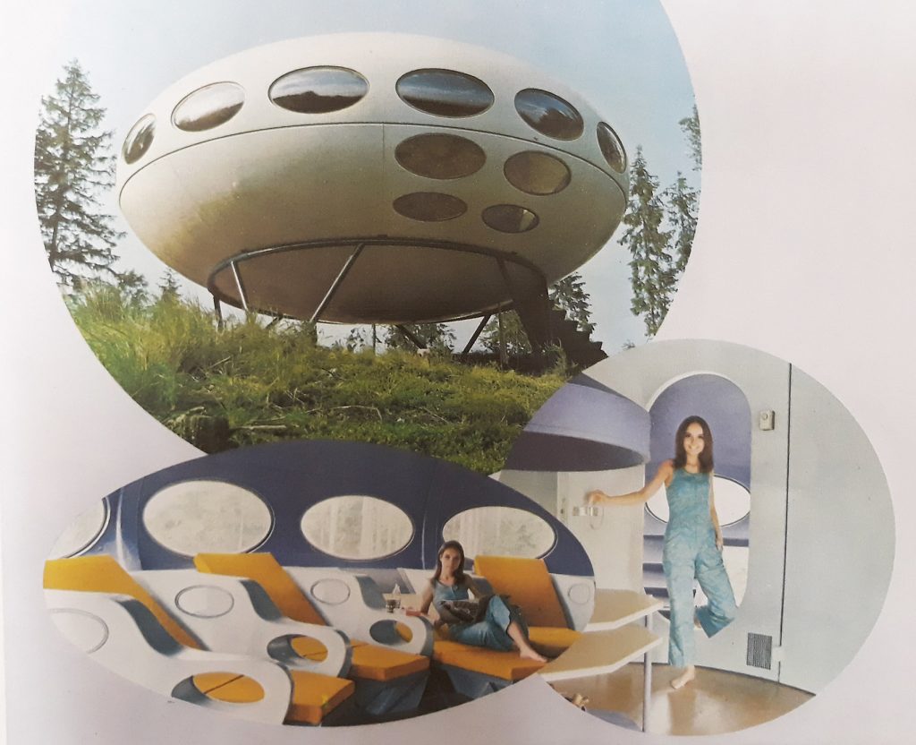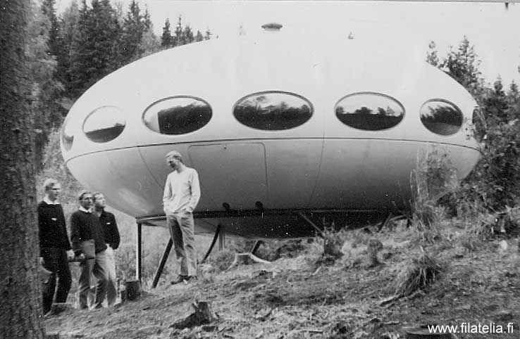 Näin mainostettiin 1960-luvun ”Tulevaisuuden olotilaa”, maanpinnalle laskeutuneelta ufolta näyttävää muovista Futuro-taloa. Elettiin aikaa, jolloin muovin uskottiin ratkaisevan rakentamisen haasteita. Futuro oli suunniteltu tuotavan helikopterilla suoraan tontille ilman perustusten valamista, avaruustyyliin valmiiksi kalustettuna ja helppokäyttöisenä. Kaikki, kuten alas laskeutuvat portaat ja kääntyvät tuolit toimivat ”napin painalluksella”.