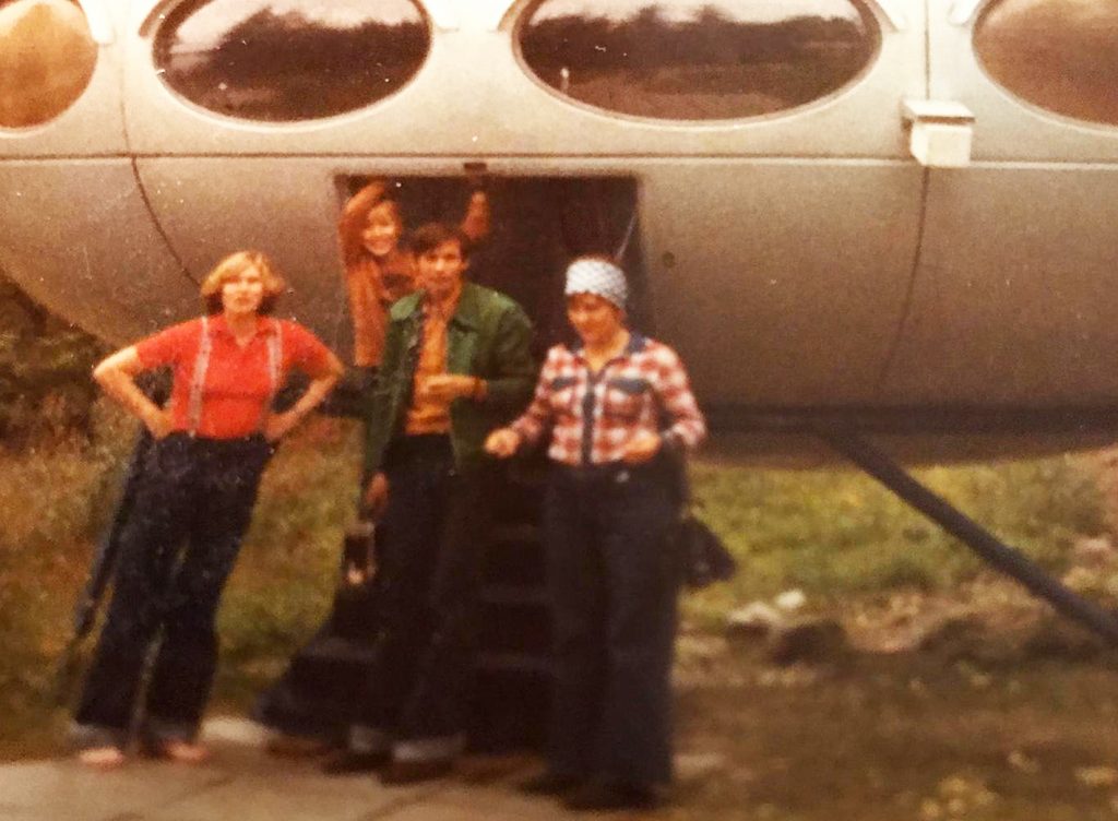 Tuula Hiidenkarin arkistoistaan löytämässä valokuvassa eturivissä Sirkku Suuronen sekä Jaakko ja Hilkka Hiidenkari.