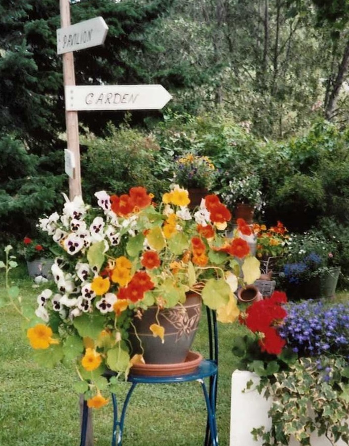 Keväällä pihassa aukeavat narsissit ja tulppaanit. Kesällä piha on rehevimmillään, kun valkoiset liljat aukeavat, krassit, päivänkakkarat ja ruusut hehkuvat ja köynnökset kiipeilevät kehikoissaan. Naiset ovat hankkineet pihalle myös erilaisia patsaita ja kynttilälyhtyjä. Monet hankinnat on tehty kirpputorilta. Parivaljakko nauttii kerrostalopihansa tunnelmasta.