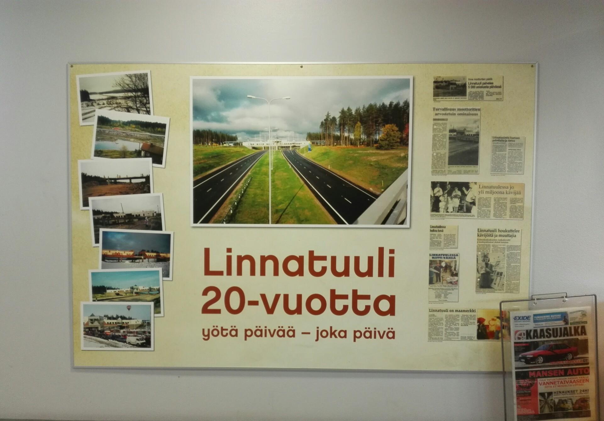 Lähdimme Turengista kohti Linnatuulta. Minä ajoin ja kaverini istui vieressäni. Aloimme miettimään, kuinka kauan matkakohteemme itse asiassa onkaan ollut olemassa. Ajomatkan ratoksi päätimme hieman selvitellä asiaa. Kaverini luki netistä löytämiään tietoja: “Linnatuuli on Helsinki-Tampere moottoritien päälle rakennettu huoltoasema. Se sijaitsee Janakkalan kahden kuntakeskuksen Turengin ja Tervakosken välillä. Linnatuuli valmistui samana vuonna kuin sen ali kulkeva moottoritie, eli vuonna 1992.”