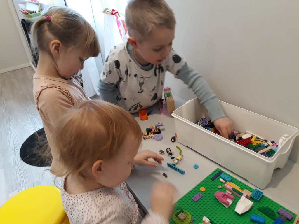 Edessä Anni sekä Siiri ja Tuukka legojen kimpussa.