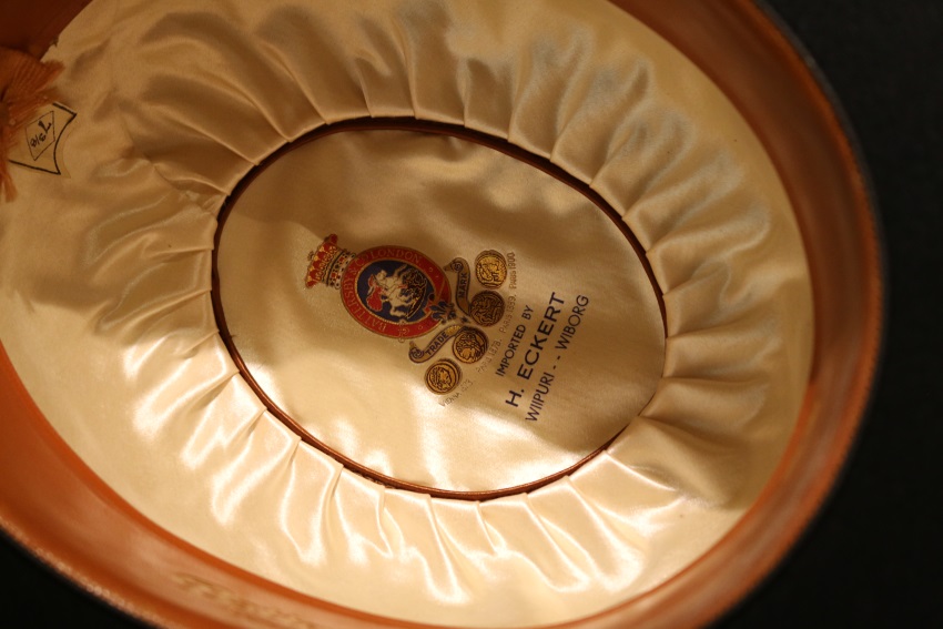 Antti Ahlbergin hattu, ilmeisesti aito, Briteissä valmistettu.