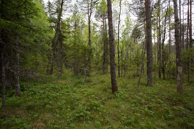 Harjun juurella suo muuttuu kangasmetsiksi. Tyypillinen laji on