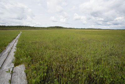 liereäsara, hoikkavilla ja villapääluikka. Pitkosten vieressä kasvaa