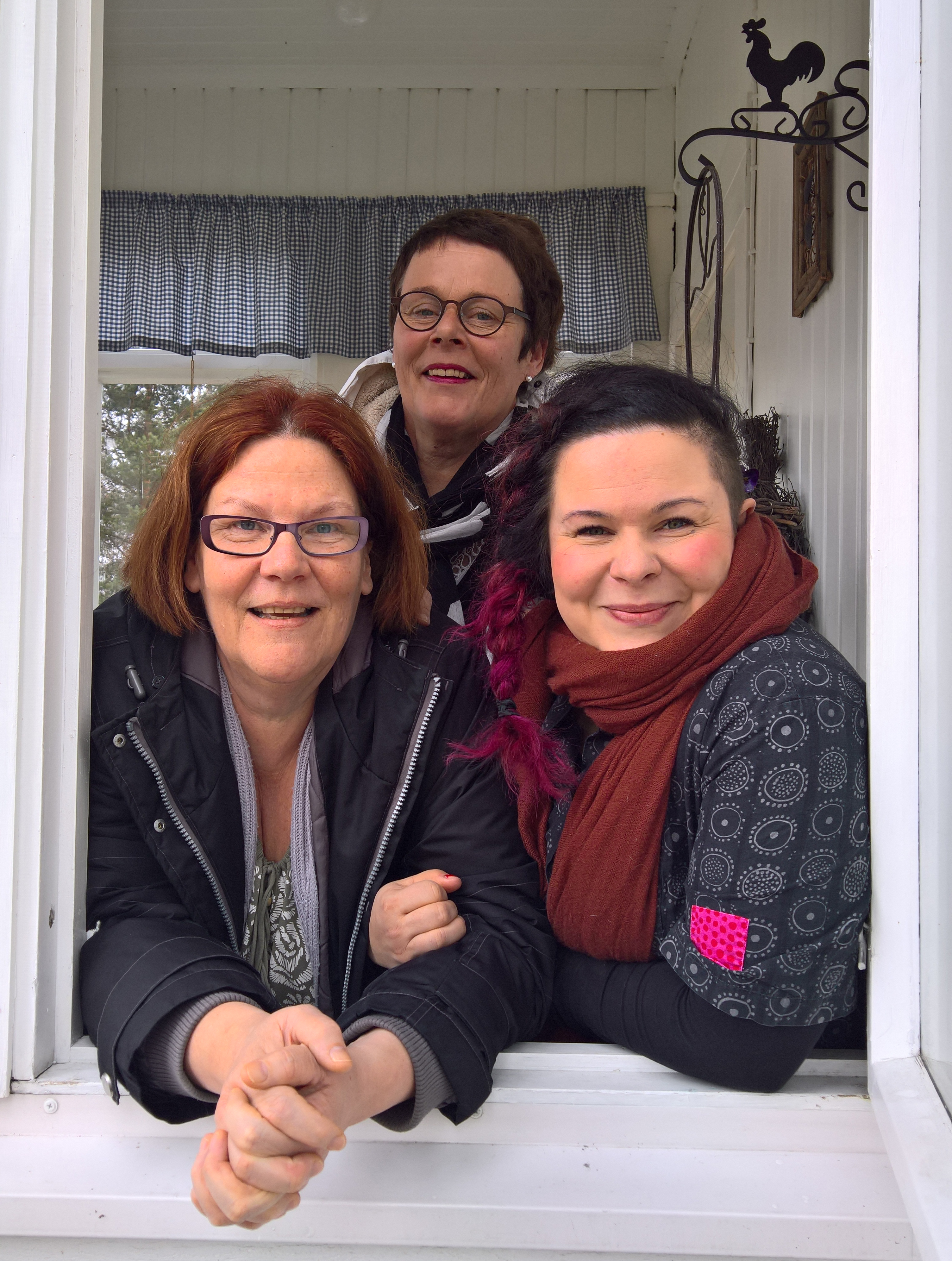 Ihanat naiset ikkunassa, Outi (vas.), Niini ja Sanna.