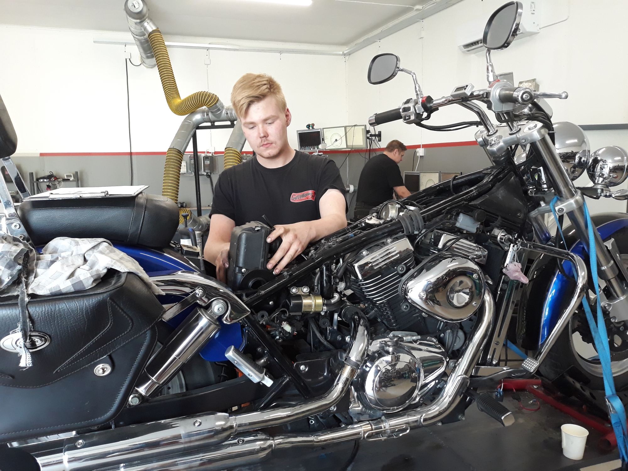 – Pyörää ajetaan dynossa samalla tavalla iästä tai tekniikasta riippumatta. Vanhojen pyörien kanssa saatan purkaa kaasuttimet pöydälle mutta uudempien kanssa kytken johdot ja teen säädöt tietokoneella purkamisen sijaan.